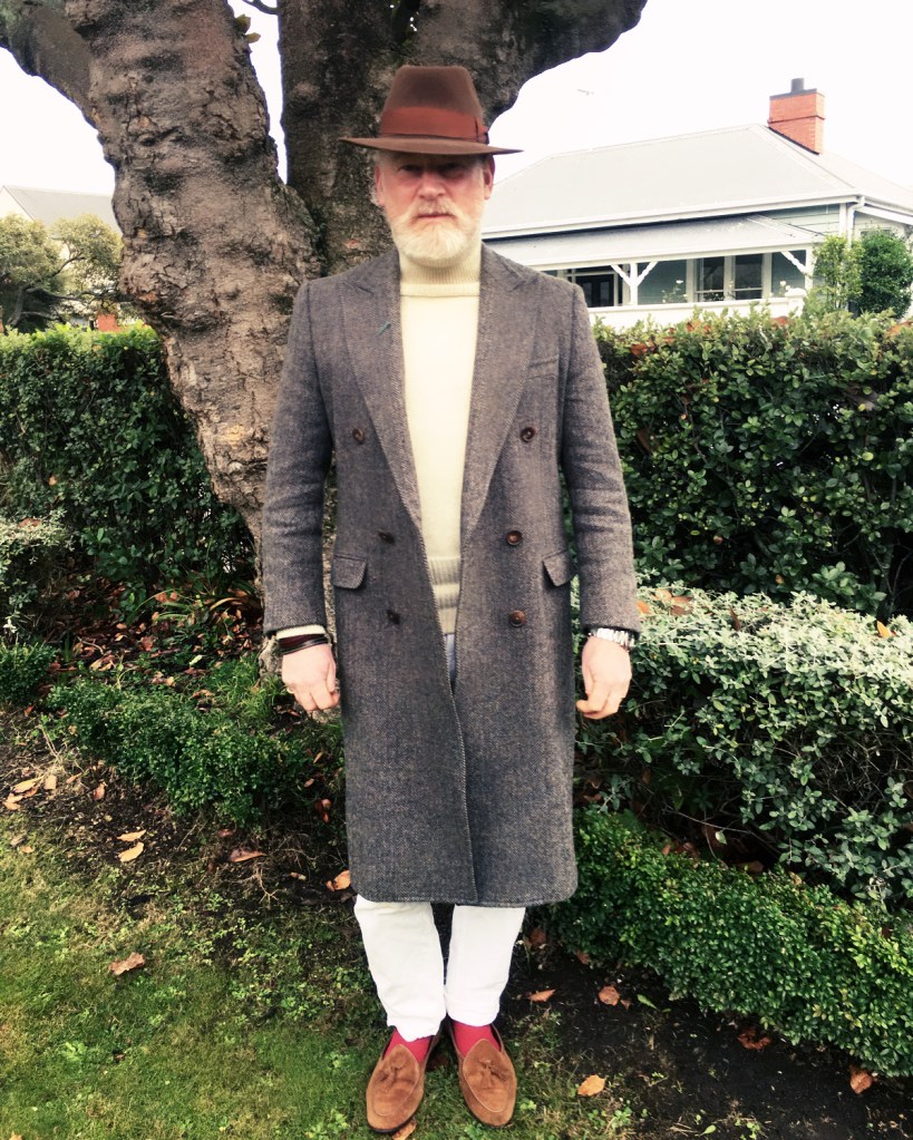 Well, back to olive green and more broadly green. I have heard that there is such a thing as the ‘green disease’ where people become obsessed with the colour green. I’m really not sure if this is true, however I can see the attraction of a colour that really works well with most outfits. As I sit writing this, I’ve started to think just how much green I also own. There’s an olive double breasted suit in linen, green Ralph Lauren wax jacket, green Hunter wellies, green cashmere Ralph Lauren shawl jumper, green Harris Tweed suit… gosh…maybe I should rename the blog Green. Enough of the green, however it really is a versatile colour and should be explored if you have never thought of it.
